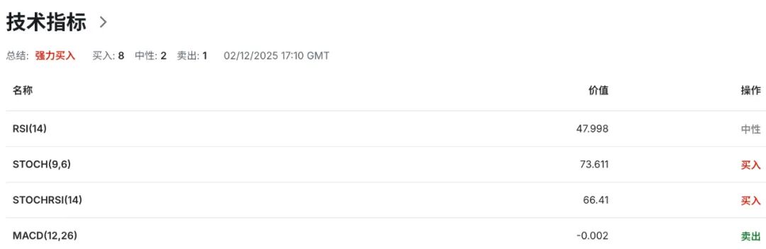 从日线级别技术指标观察,英镑在测试布林带上轨后持续回调,价格目前虽仍运行于中轨与上轨之间的偏强区间,但布林带带宽收窄,表明隐含波动率下降,市场可能进入震荡整理阶段。当前上轨1.3260区域构成短期动态阻力参考,中轨1.3150区域为多空强弱对比的动态分界线,下轨1.3040区域则提供对应支撑。动能方面,14日相对强弱指数(RSI)已回落至50中性水平附近,确认上行动能减弱,这与布林带收窄的技术信号共同指向价格短期将转入震荡格局。